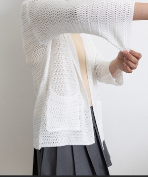 シンプルでありながら、トレンド感たっぷりの透かし編みカーディガン