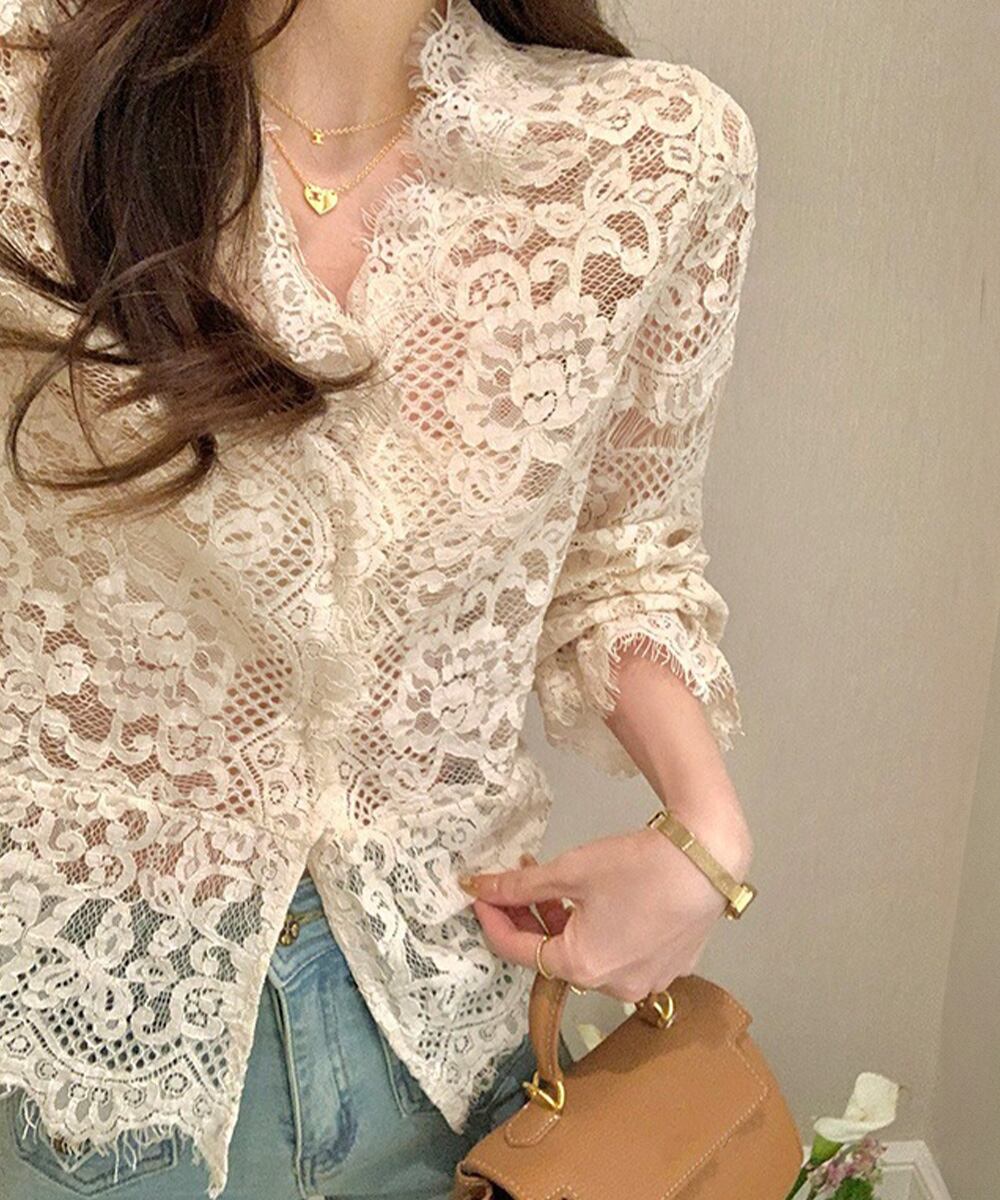 繊細なフラワーレースが魅力的なフェミニンなブラウス