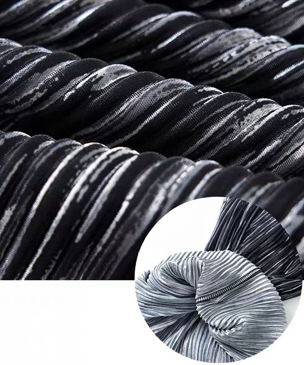 しなやかな生地と立体的なプリーツが、動くたびに異なる表情を生み出す、アーティスティックな一着。