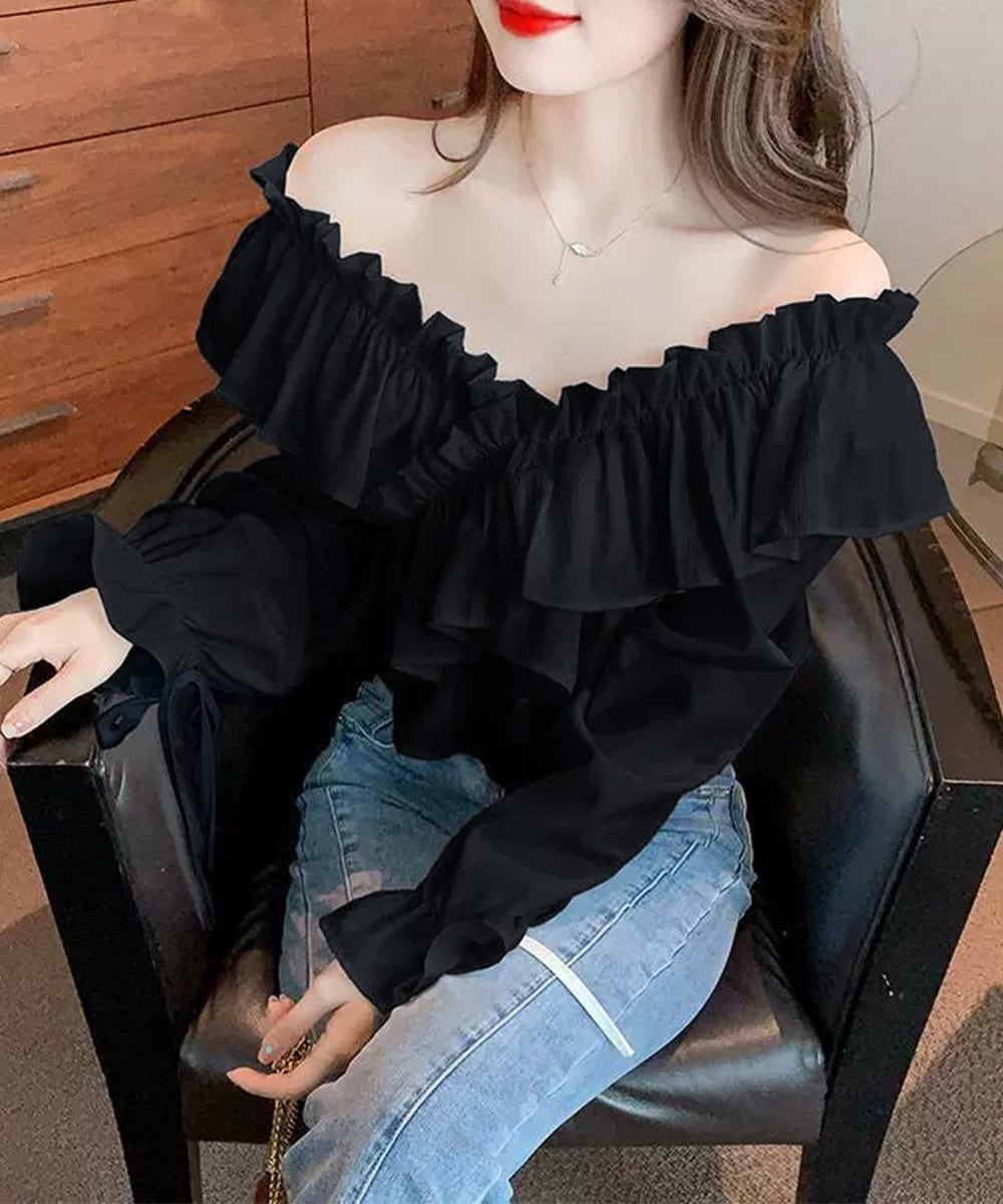 フリルブラウス オフショルブラウス 長袖 A22567701
