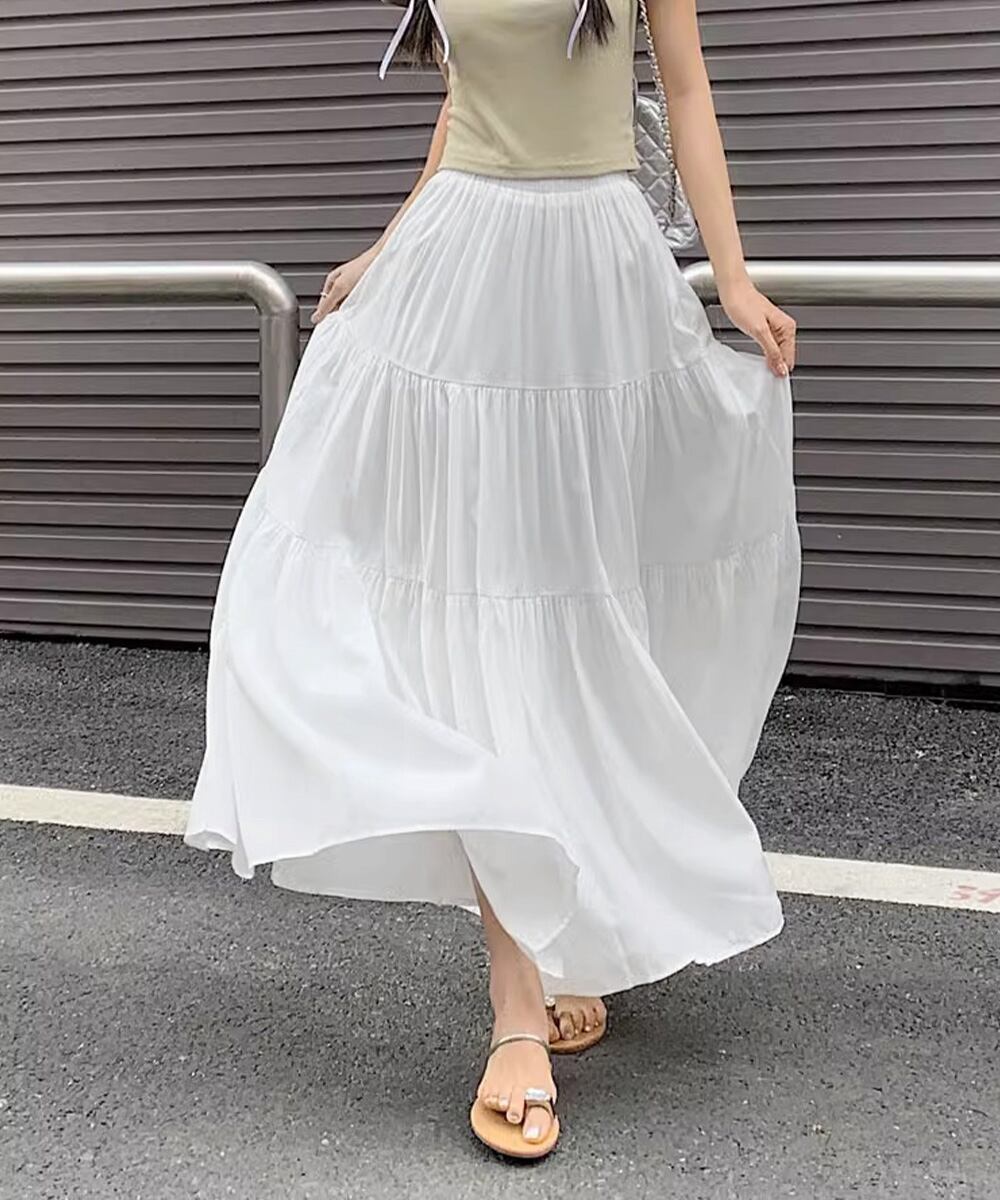 細かいプリーツデザインが特徴で、歩くたびに美しく広がり、女性らしさを引き立てる