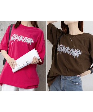 大胆なアート感のあるロゴプリントが目を引く半袖Tシャツ。