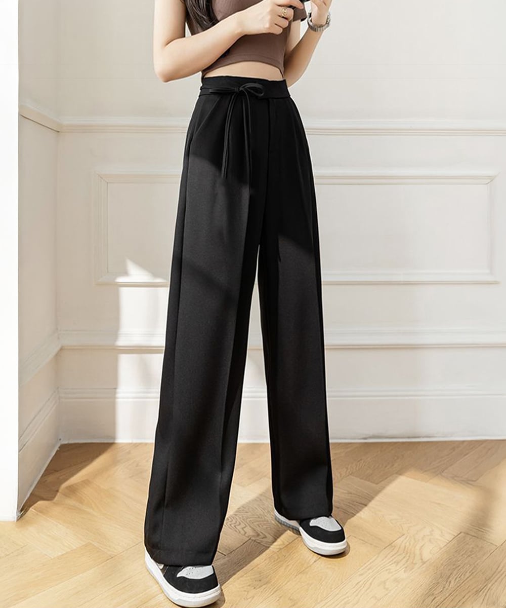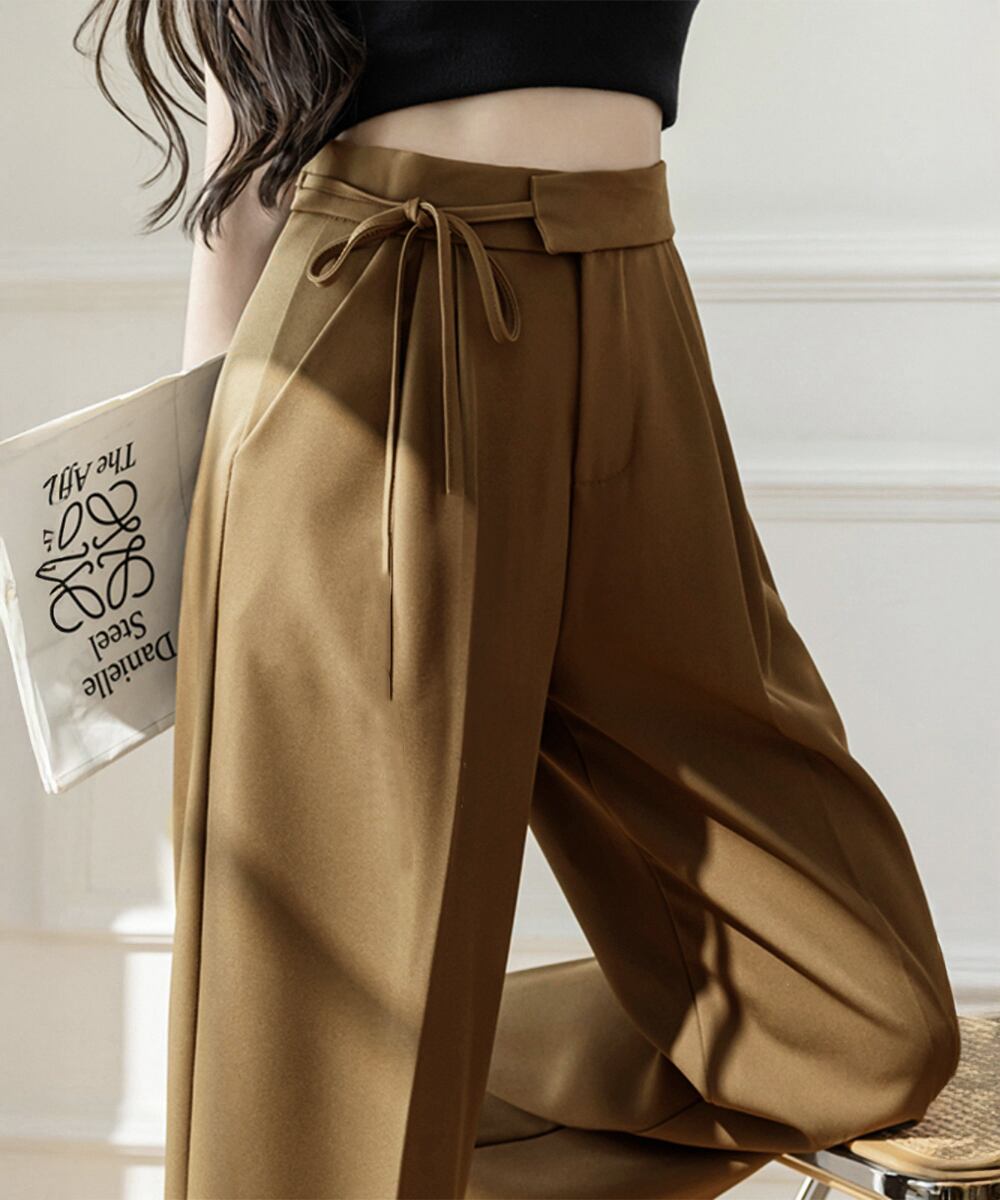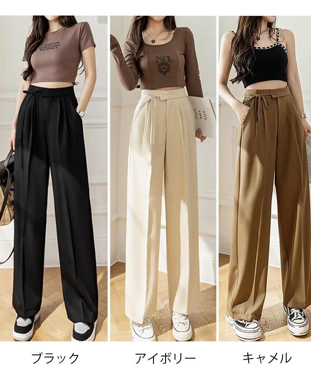 小柄さんにも嬉しいハイウエストリボンスラックス。
