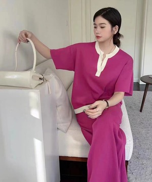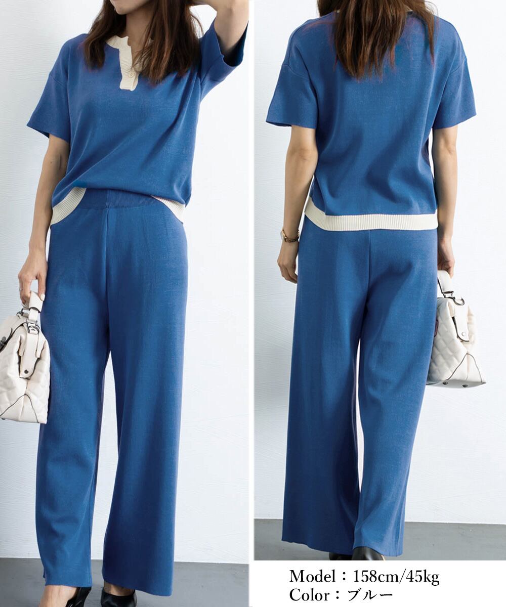 カジュアルな中にも女性らしさの漂うサマーニットセットアップ。