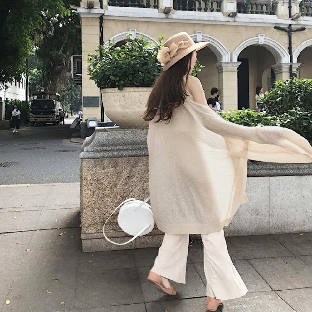 春夏から秋まで長く使える、薄手の長袖ニットカーディガン。