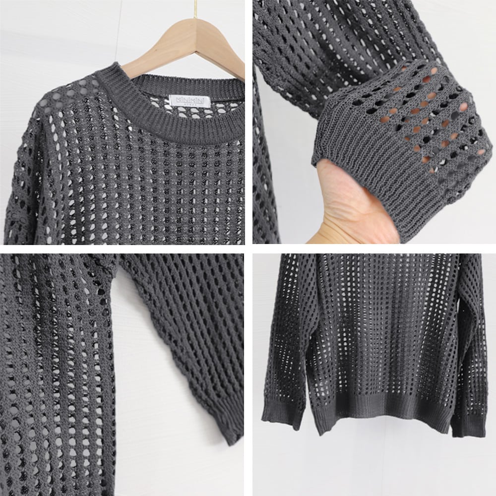 涼しげなメッシュ素材は通気性に優れている透かし編みニットです。