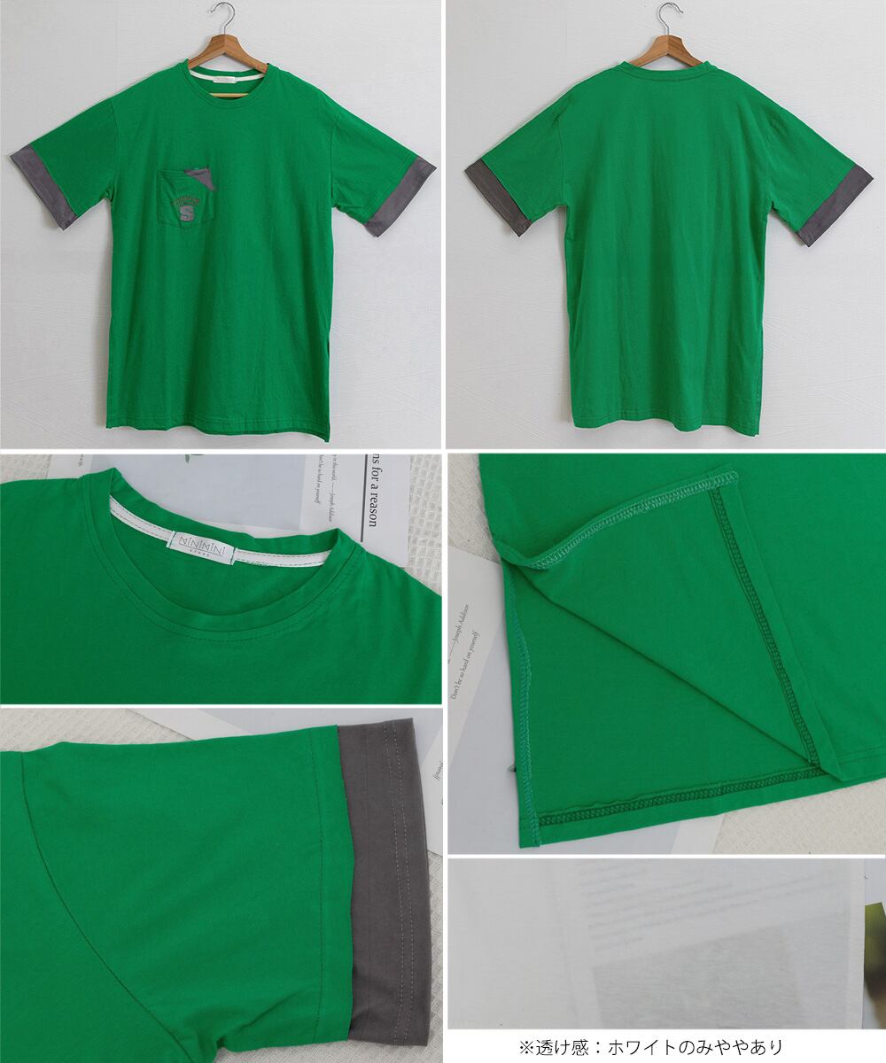 バイカラーデザインが目を引くオーバーサイズのロング丈Tシャツ。