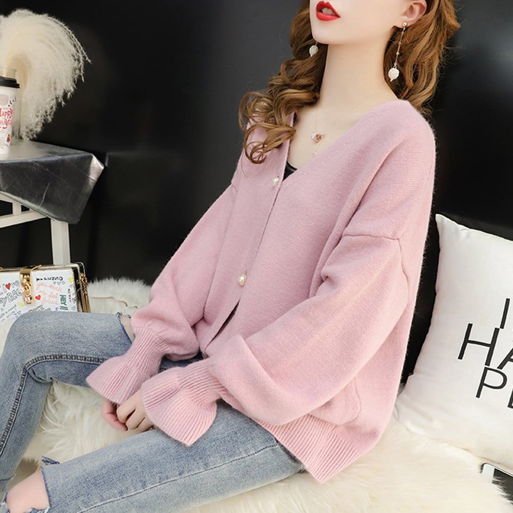 ニットセーター レディース 前開き カーディガン 無地 長袖 アウター A12558104