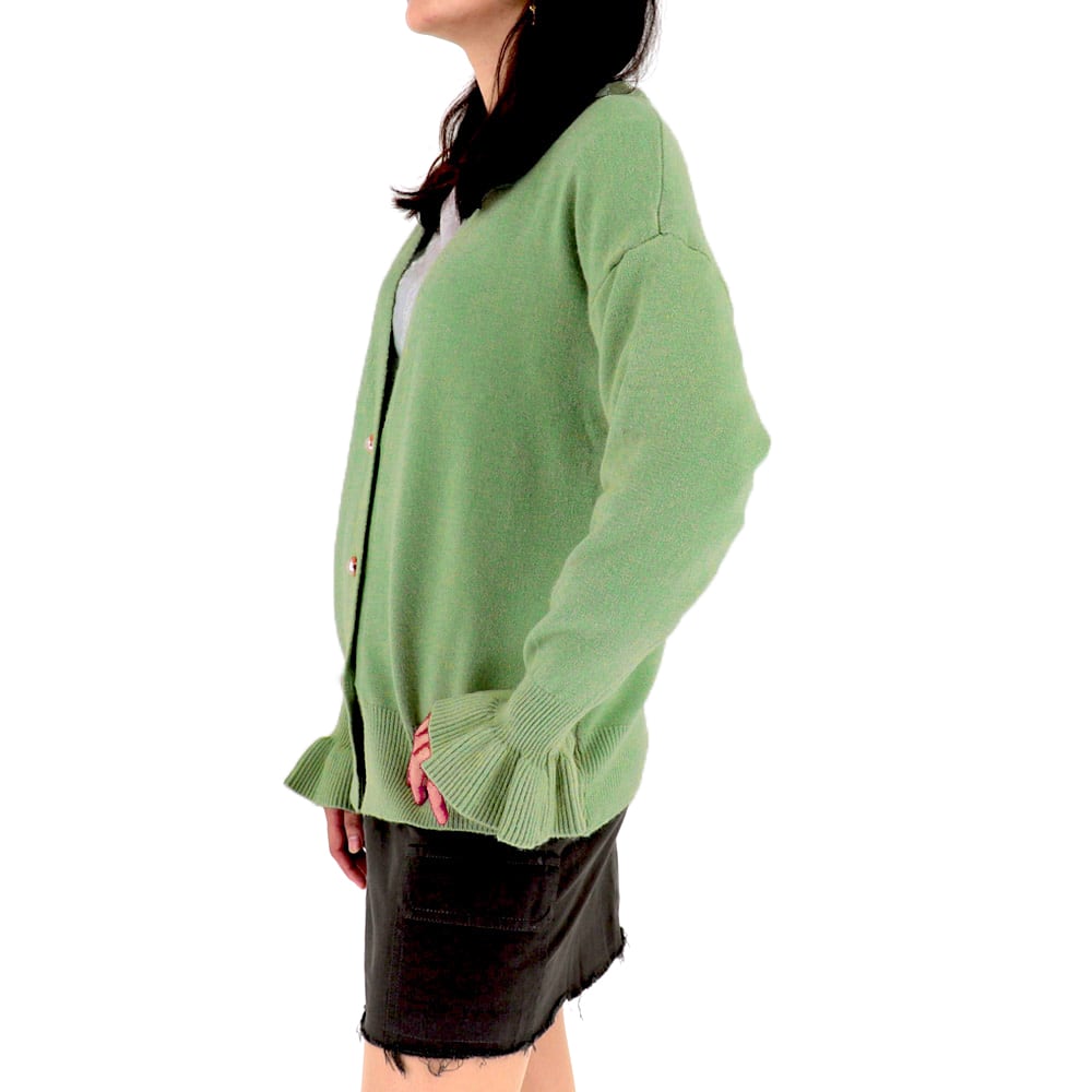 ゆったりと余裕のあるシルエットで、体のラインを気にせず着られるニットのカーディガン