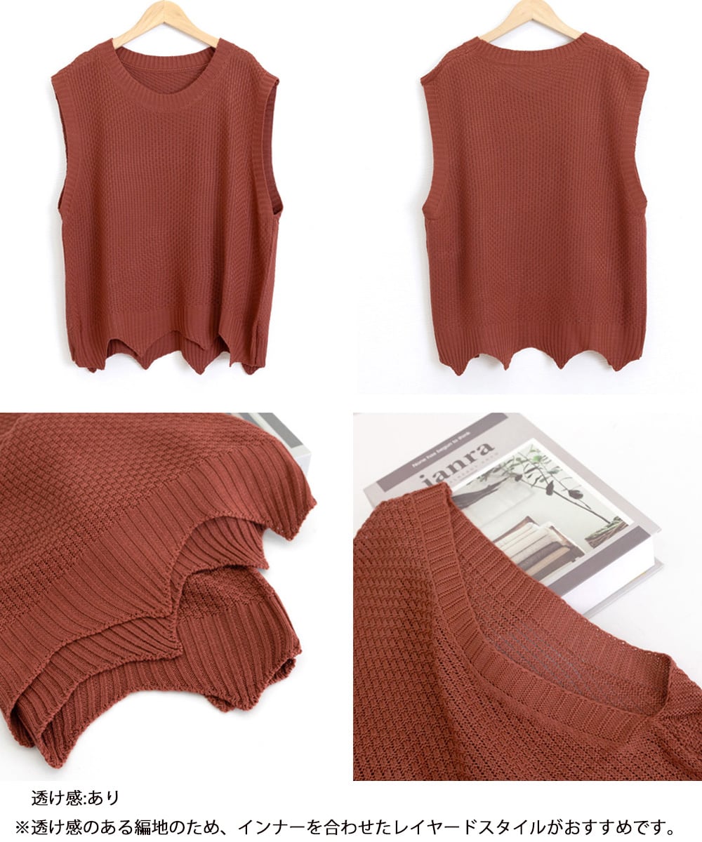 不規則な裾デザインで、シンプルな中に個性をプラスしてくれるニットベスト。