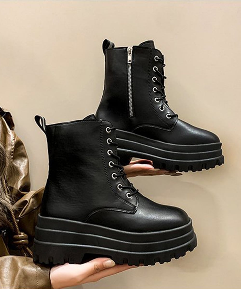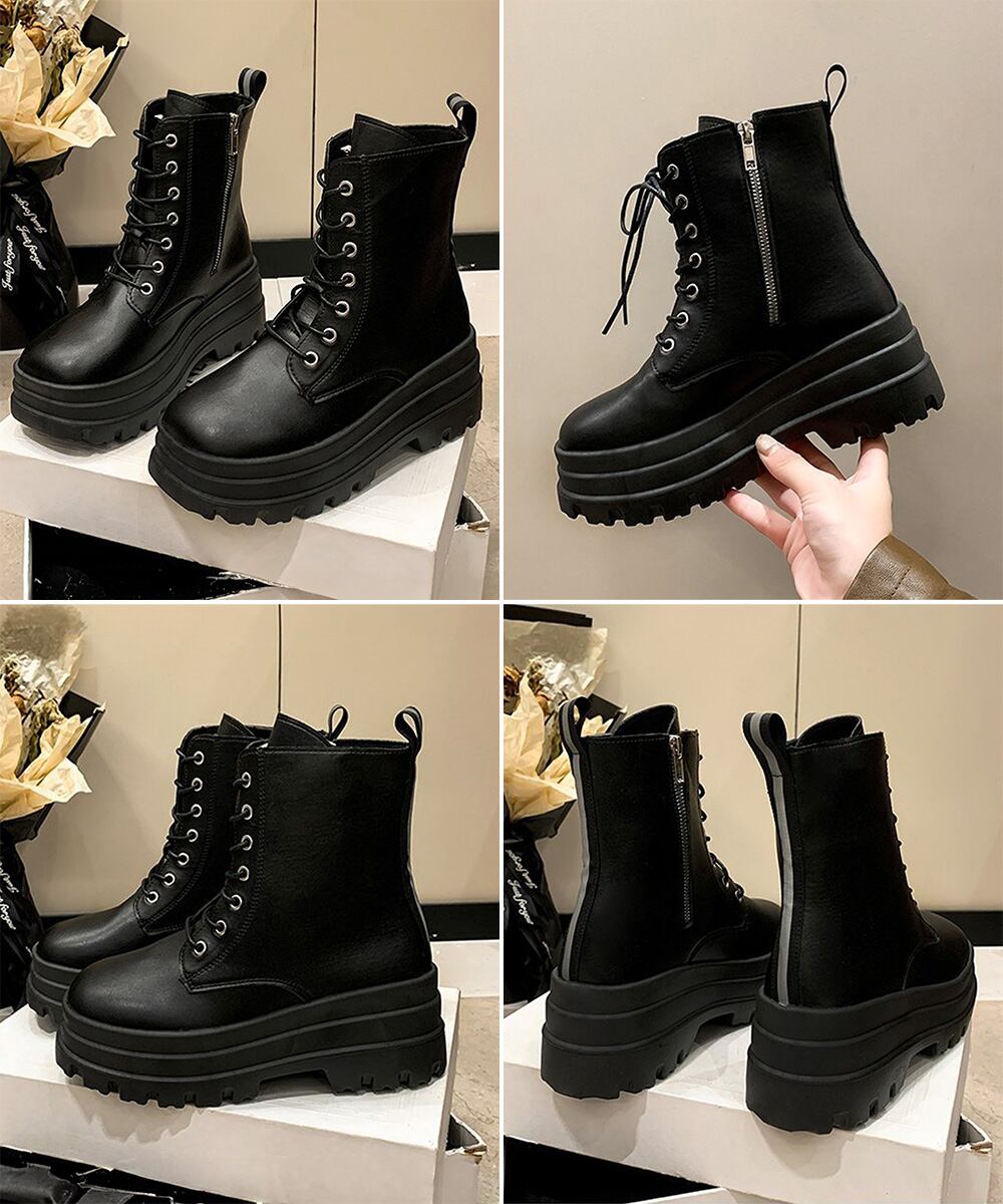 ショートブーツ厚底 ワークブーツ美脚脚長 A21935233