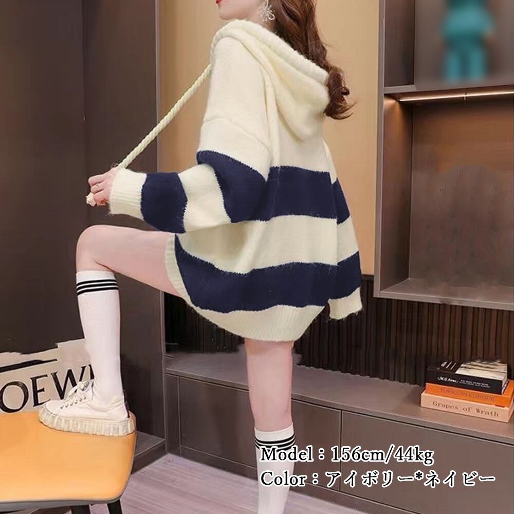 ニットパーカー ボーダー柄 A18416984