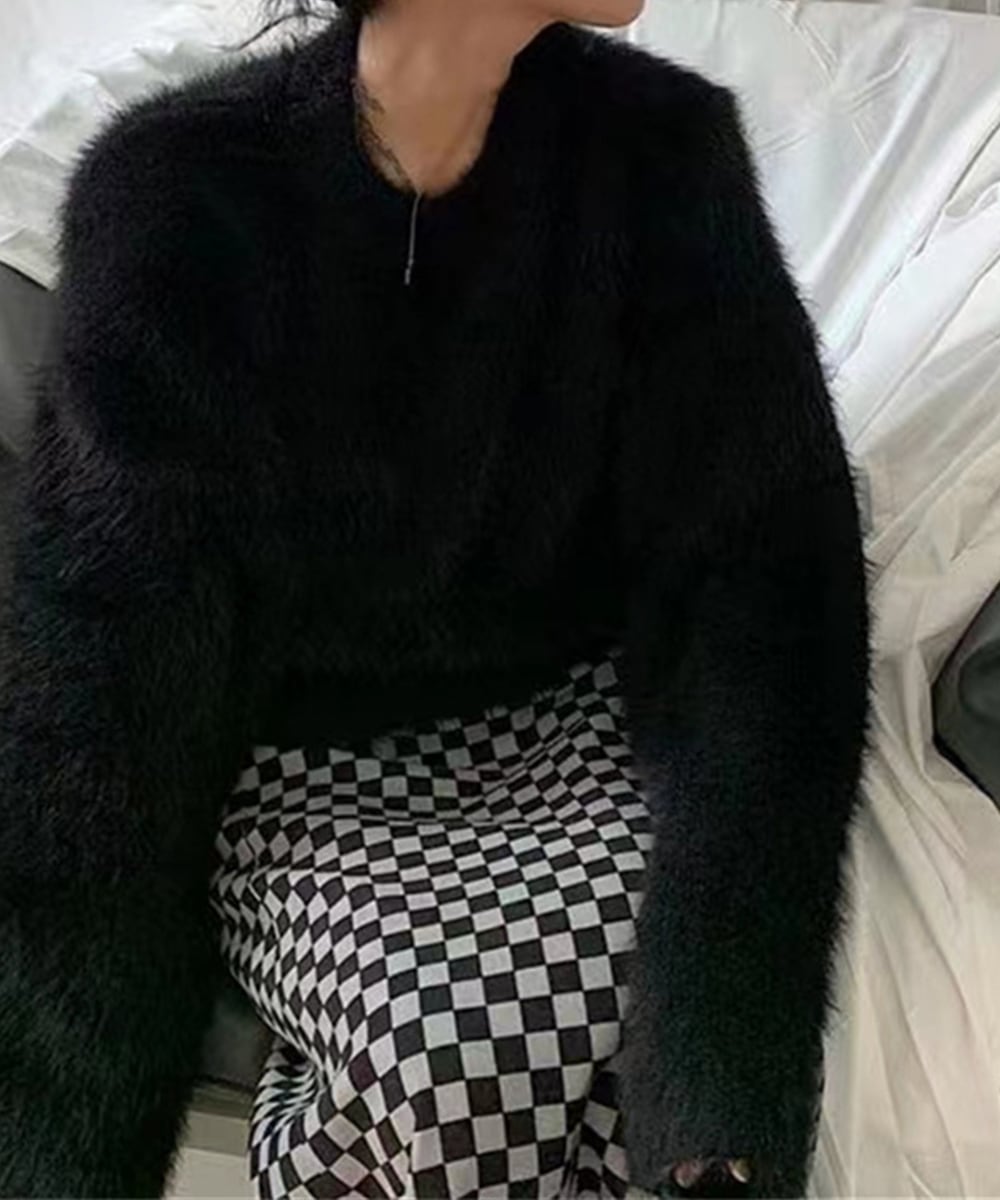 ふわふわとした柔らかな手触りが心地よい、フェミニンなシャギートップス